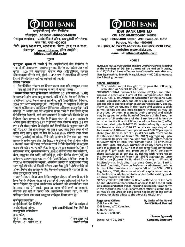 Get the free Notice of 19th AGM of the Bank