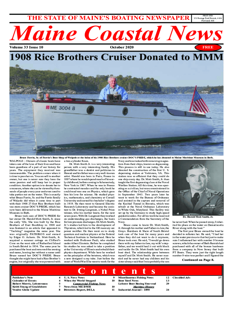 Portland, ME Maine Coastal Newsome 33 Issue 10October 2020FREE1908 Rice Brothers Cruiser Donated to MMM Bruce Darrin, Sr.