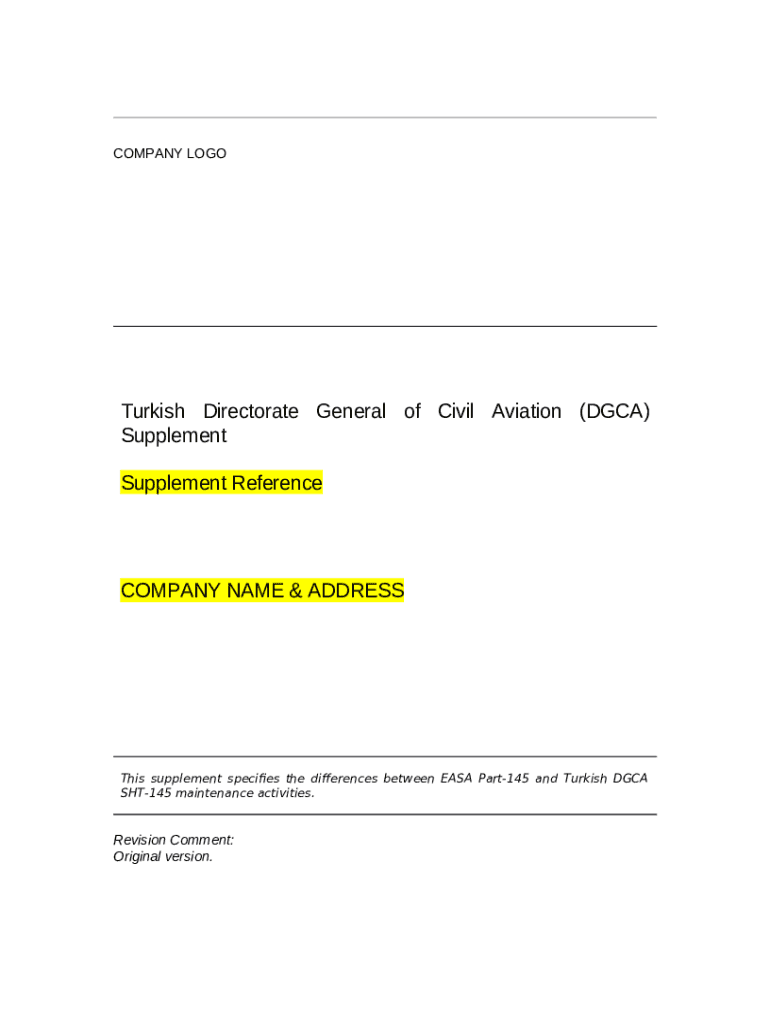 How to fill out Turkish DGCA MOE Supplement. EASA Approval Certificate Reference EASA.145.XXXX