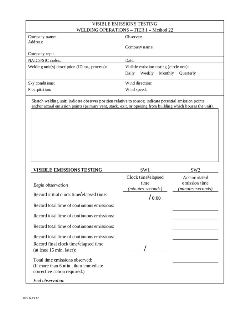 Instructions for the visible emissions monitoring instructionswelding ... form
