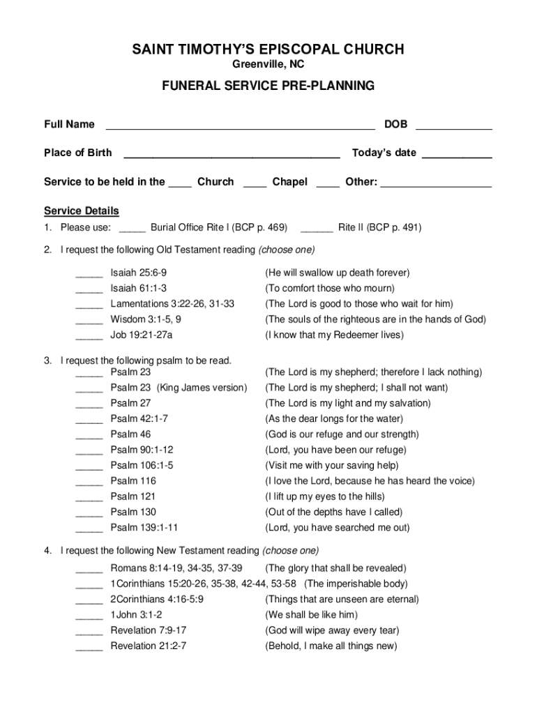 Full Name___ DOB ___Place of Birth___Todays date ___Service to be held in the ___ Church ___ Chapel ___ Other: ___
