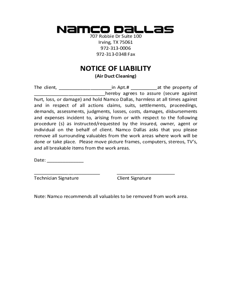 Namco Dallas/Fort Worth can be filled out online or sent by mail with the required information about the business.