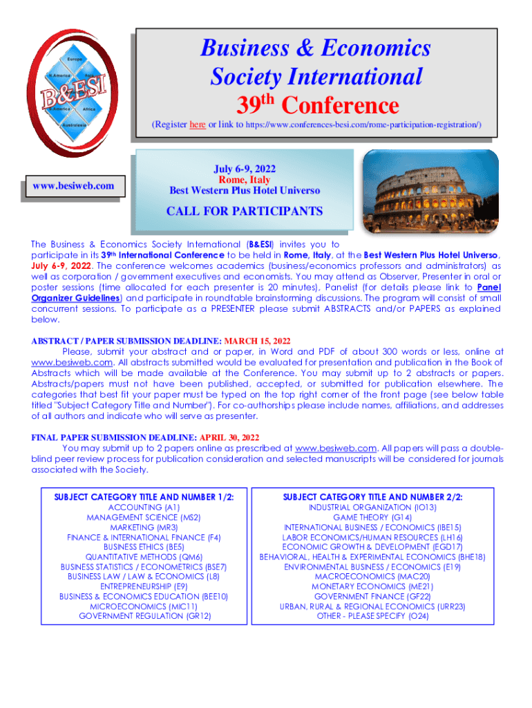 Get the free Business & Economics Society International 39 Conference