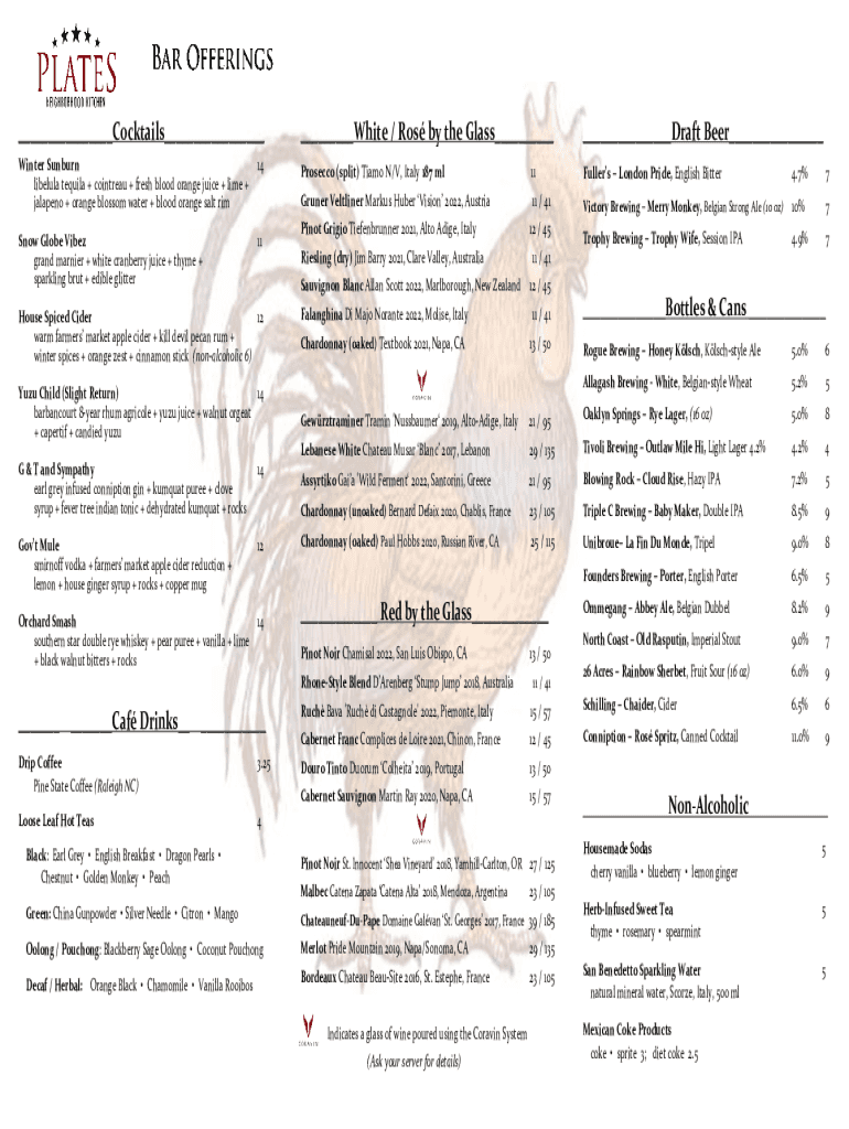 ___Cocktails______White / Ros by the Glass______Draft Beer___Winter Sunburn libelula tequila + cointreau + fresh blood orange juice + lime + jalapeno + orange blossom water + blood orange salt rimProsecco