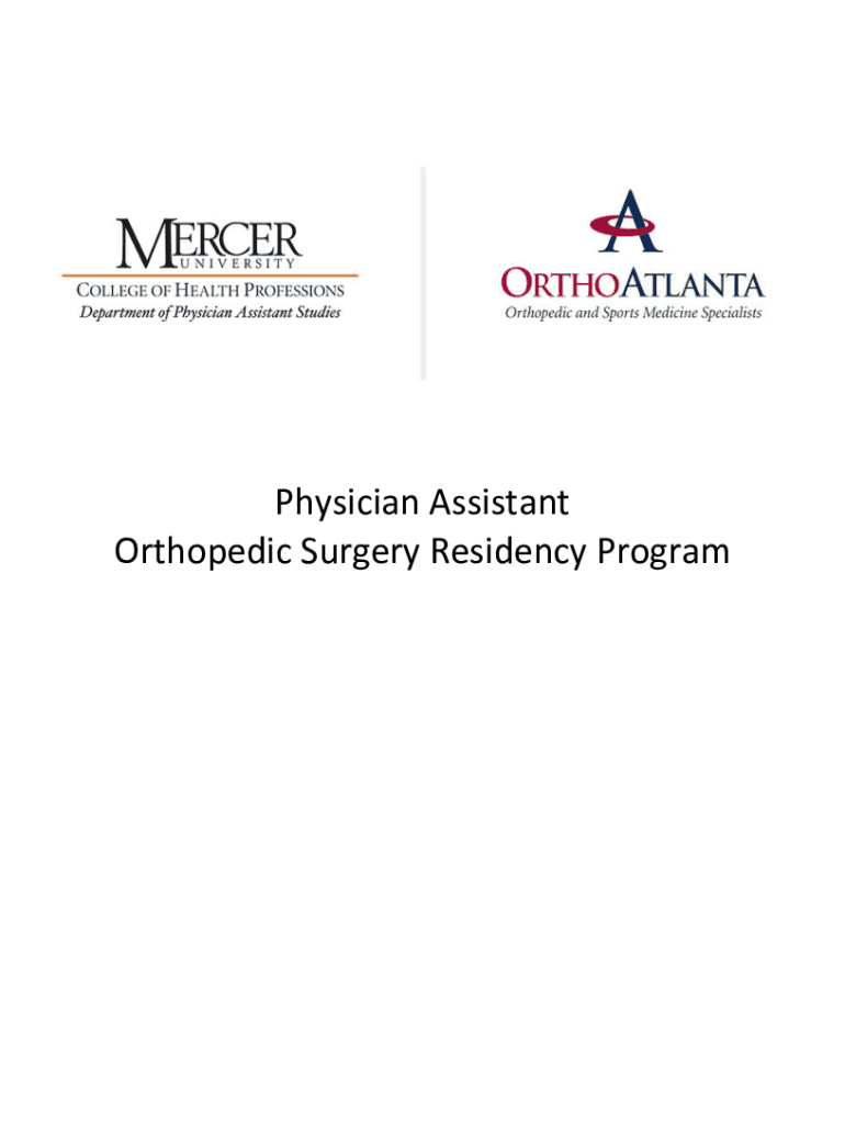 Physician Assistant Orthopedic Surgery Residency ProgramPhysician Assistant Student Handbook 01 Introduction 02 Mission Statement 03 Program Description 04 Application Process 05 Core Curriculum &