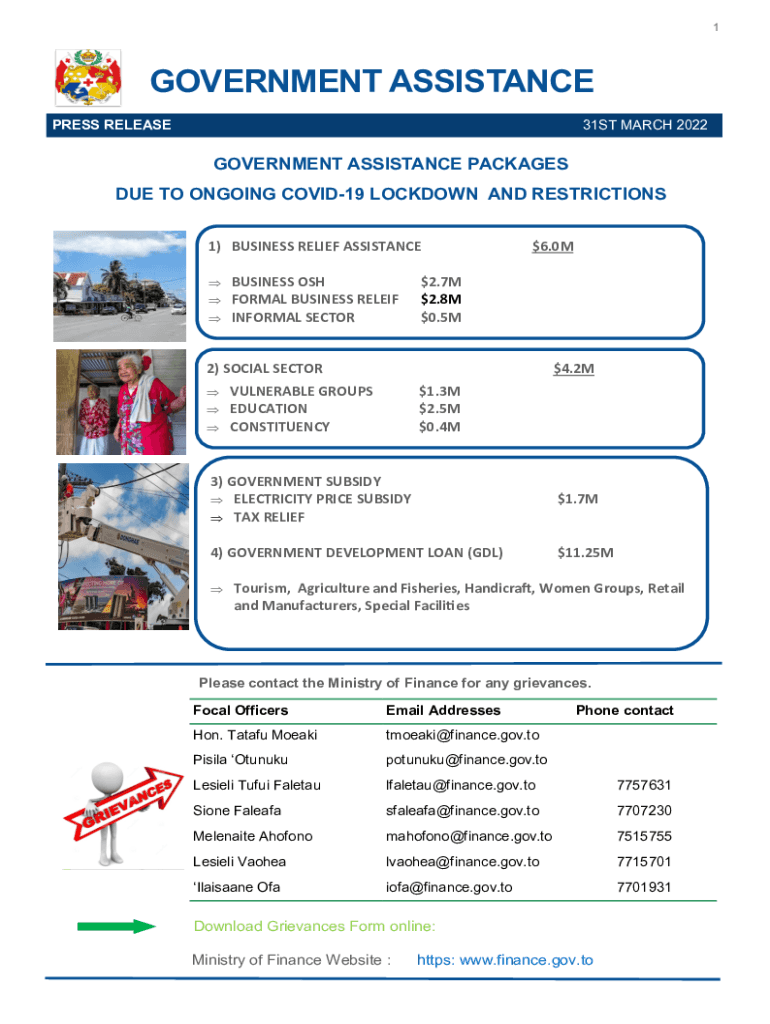 1GOVERNMENT ASSISTANCE PRESS RELEASE31ST MARCH 2022GOVERNMENT ASSISTANCE PACKAGES DUE TO ONGOING COVID19 LOCKDOWN AND RESTRICTIONS 1) BUSINESS RELIEF ASSISTANCE BUSINESS OSH FORMAL BUSINESS RELEIF