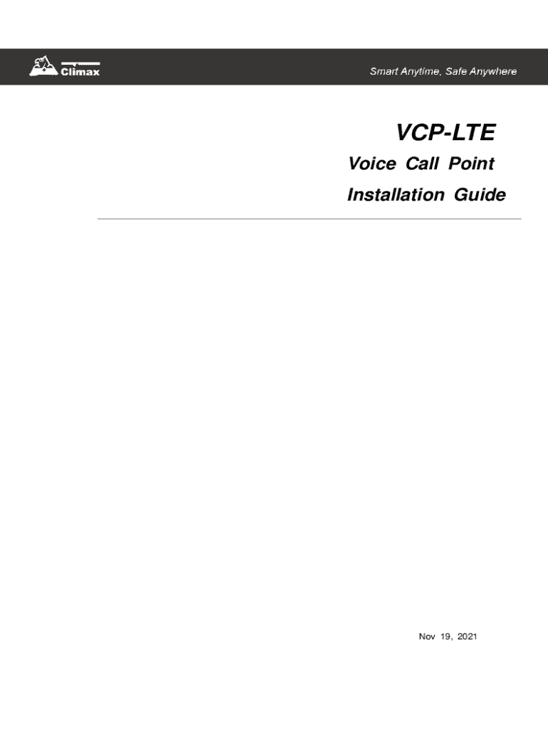 VCPLTE Voice Call Point Installation GuideNov 19, 2021Table of Contents 1.INTRODUCTION ___ 12.APPLICATION OVERVIEW___ 2 2.1.PARTS IDENTIFICATION ___ 22.2.THE POWER SUPPLY ___ 33.GETTING STARTED ___