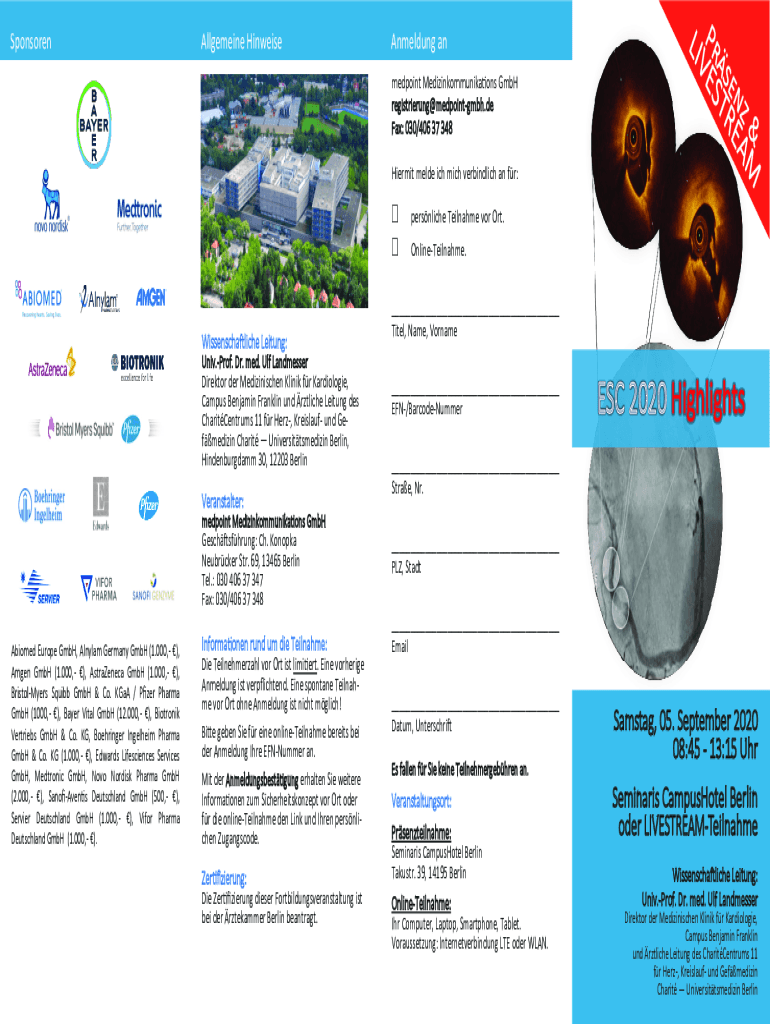 SponsorenAllgemeine HinweiseAnmeldung an medpoint Medizinkommunikations GmbH registrierung@medpointgmbh.de Fax: 030/406 37 348 Hiermit melde ich mich verbindlich an fr: Wissenschaftliche Leitung: