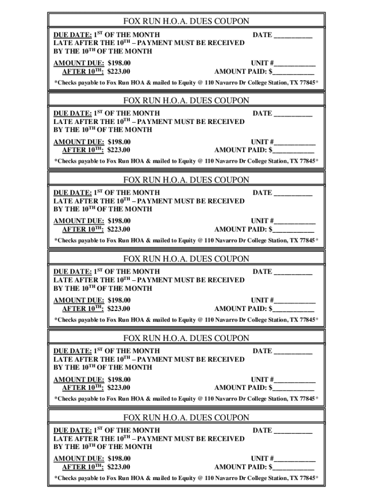 FOX RUN H.O.A. DUES COUPON