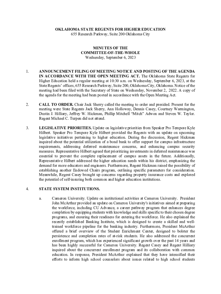 OKLAHOMA STATE REGENTS FOR HIGHER EDUCATION