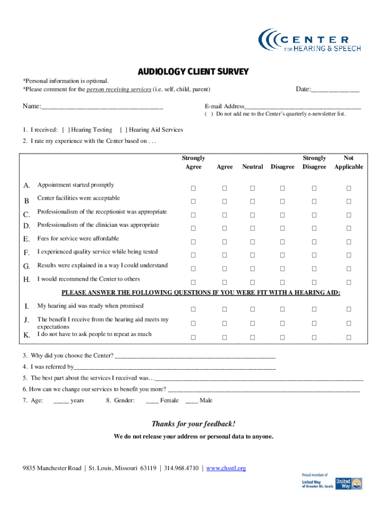 How to fill out audiology client survey?