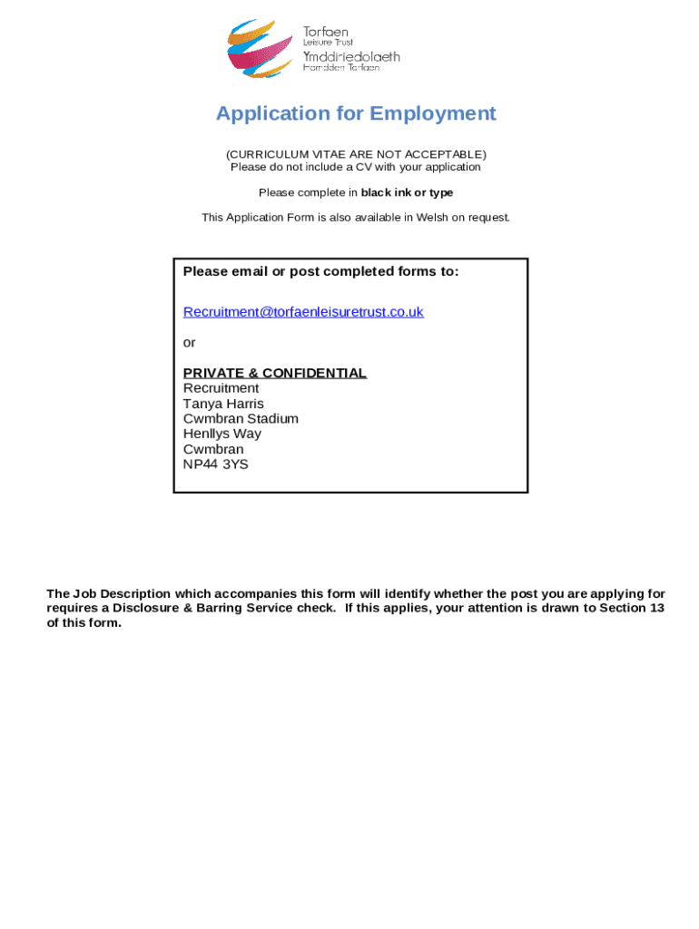 The What should I leave out of my resume? - torfaenleisuretrust co is a fillable form in MS Word extension that has to be completed and signed for specific reasons. Next, it is furnished to the relevant addressee to provide some details and data. The completion and signing can be done or with an appropriate application e. g. PDFfiller. These tools help to complete any PDF or Word file without printing them out. It also allows you to customize its appearance depending on your requirements and put a legal digital signature. Once finished, the user ought to send the What should I leave out of my resume? - torfaenleisuretrust co to the recipient or several of them by email and even fax. PDFfiller has a feature and options that make your Word template printable. It offers a number of settings for printing out appearance. It does no matter how you will send a document - in hard copy or electronically - it will always look professional and firm. To not to create a new document from the beginning every time, make the original Word file into a template. After that, you will have an editable sample.