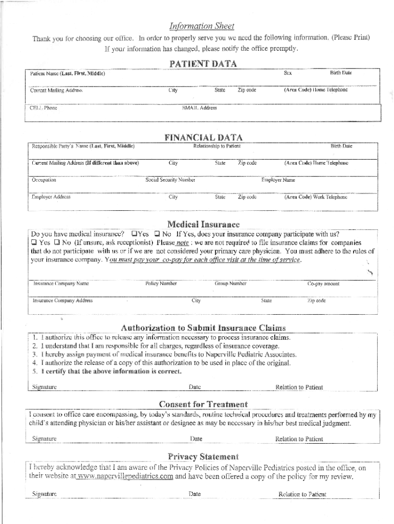 Information Sheet Thank you for choosing our office.In order to properly serve you we need the following information. (Please Print)If your information has changed, please notify the office promptly.PATIENT