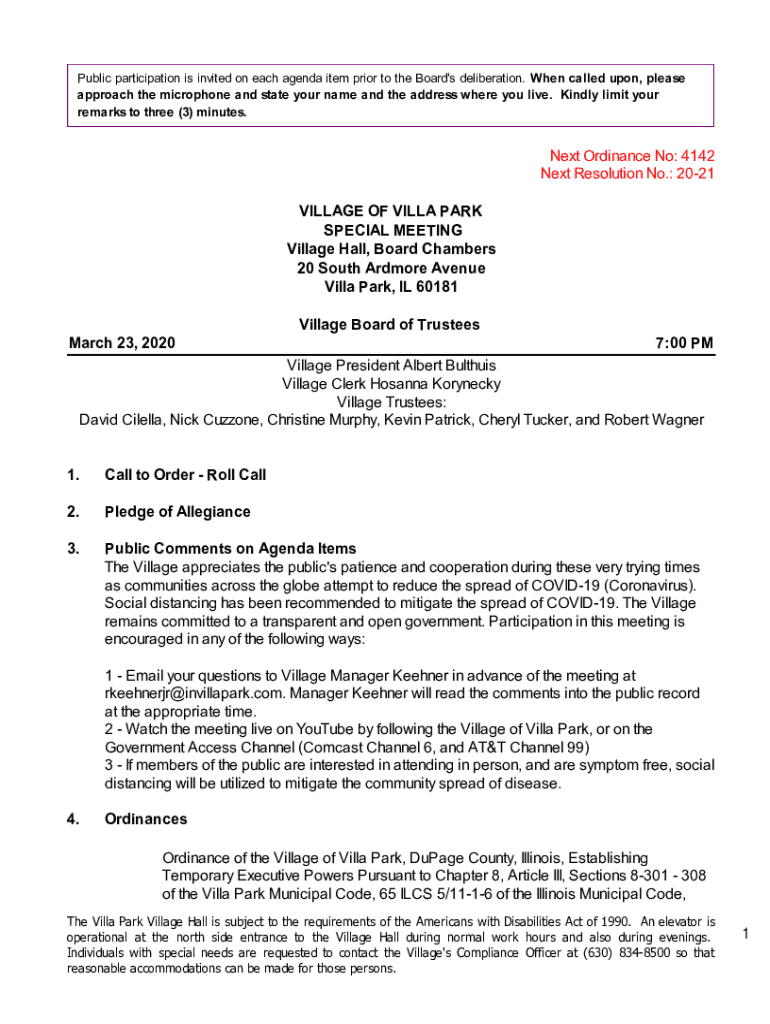 Public participation is invited on each agenda item prior to the Board\'s deliberation. When called upon, please approach the microphone and state your name and the address where you live. Kindly