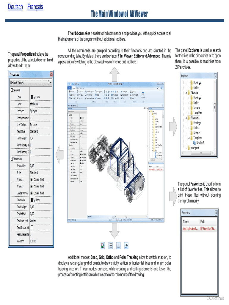 DeutschFranaisThe Main Window of ABViewer The ribbon makes it easier to find commands and provides you with a quick access to all the instruments of the program without additional toolbars.The panel