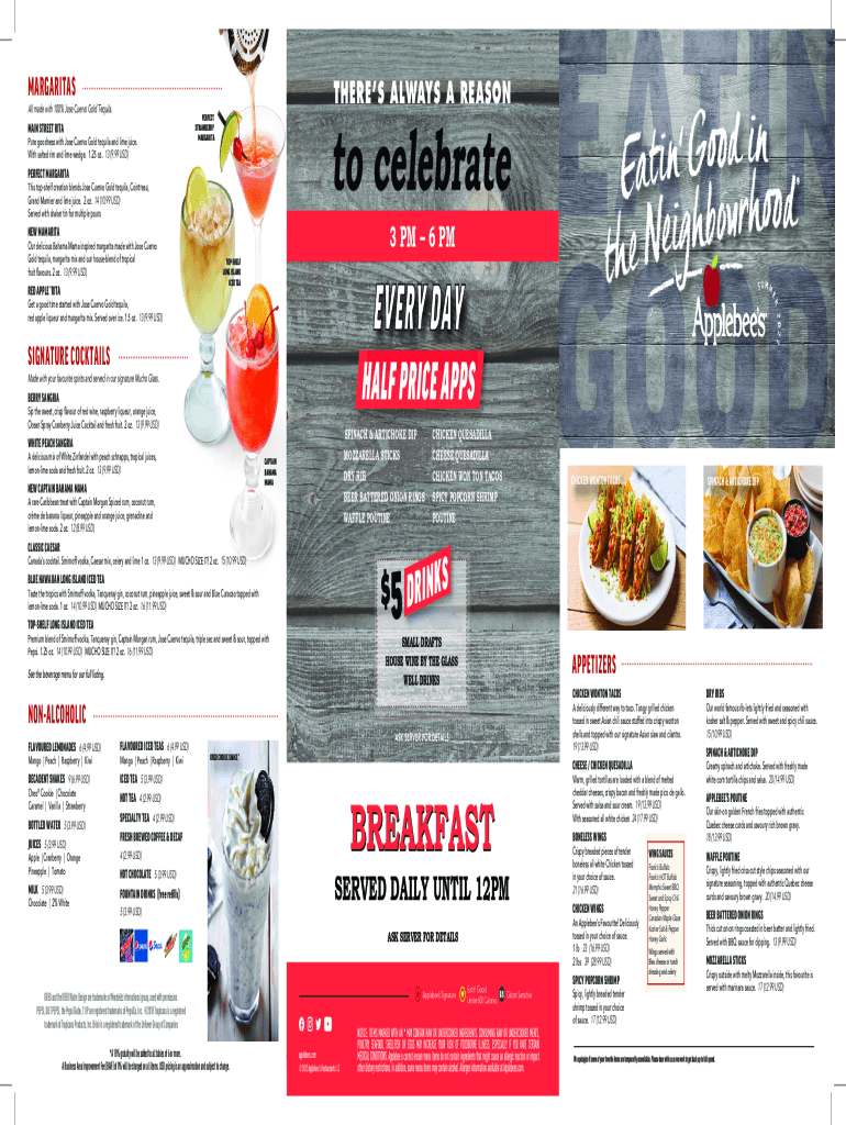 MARGARITASTHERES ALWAYS A REASONAll made with 100% Jose Cuervo Gold Tequila.MAIN STREET RITAPure goodness with Jose Cuervo Gold tequila and lime juice. With salted rim and lime wedge. 1.25 oz. 13
