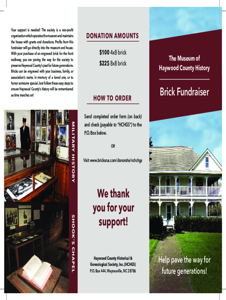 Your support is needed! The society is a nonprofit organization which operates the museum and maintains the house with grants and donations. Profits from this fundraiser will go directly into the