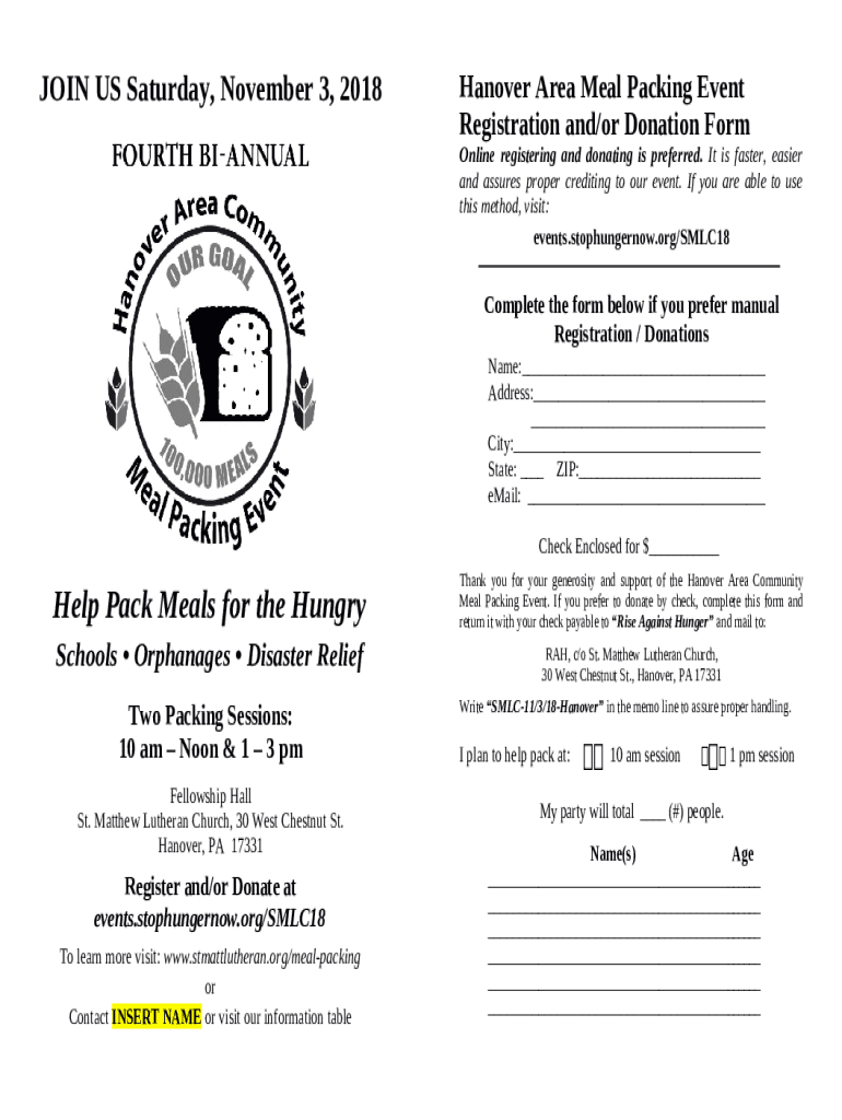 Hanover Community Meal Packing Event Downloads word template: frequently asked questions