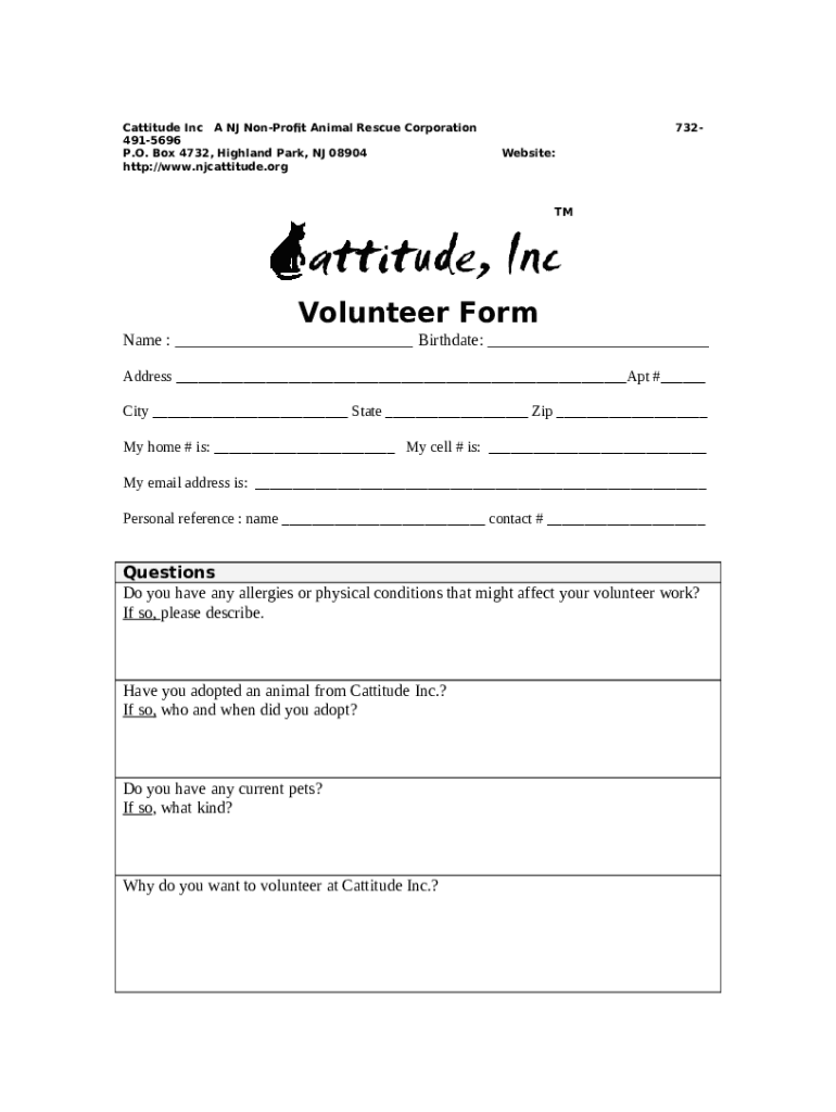 Frequently asked questions about the form Pets for Adoption at Cattitude Inc, in Highland Park, NJ
