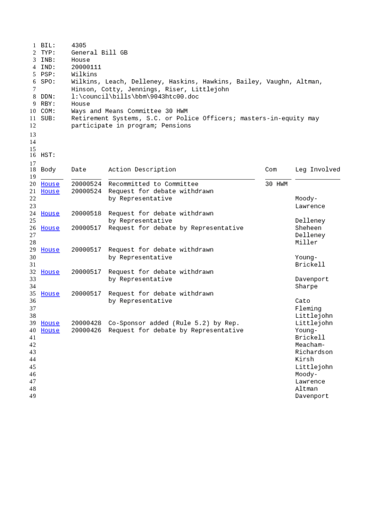 1999-2000 Bill 4305: Retirement Systems, S.C. or Police ... template instructions