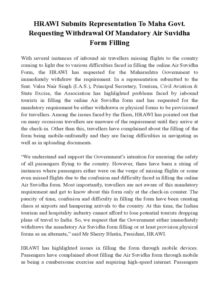 Get the free Air Suvidha Form Filling - A Hurdle For Inbound Travellers ...