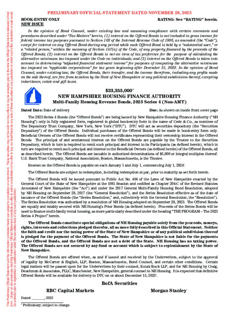 Get the free New Hampshire Housing Finance Authority. Multi-Family Housing Revenue Bonds, 2023 Se...