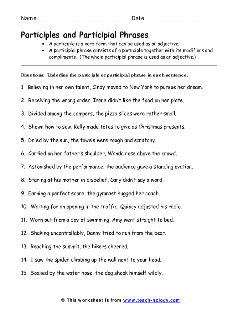 Those who are studying or teaching grammar are required to file participial worksheet 2.