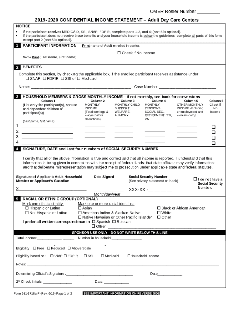 Frequently asked questions about the form Approving Adult Care Household Income Statements