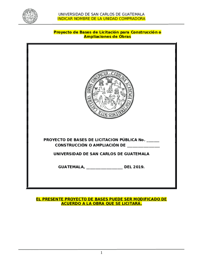 Instructions for the PROYECTO DE BASES DE LICITACION PBLICA No. - Manual form