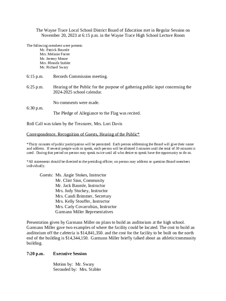 Wayne Trace Local Board of Education to meetCommunity template instructions