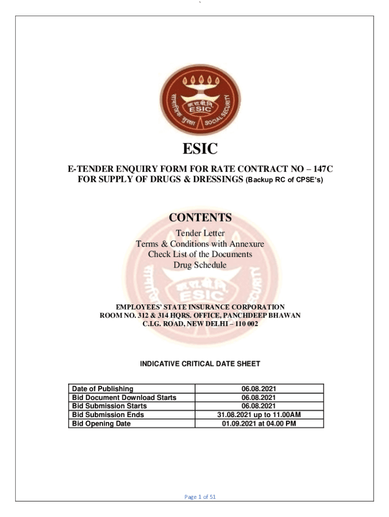 FOR SUPPLY OF DRUGS & DRESSINGS (Backup RC of Cases)CONTENTS