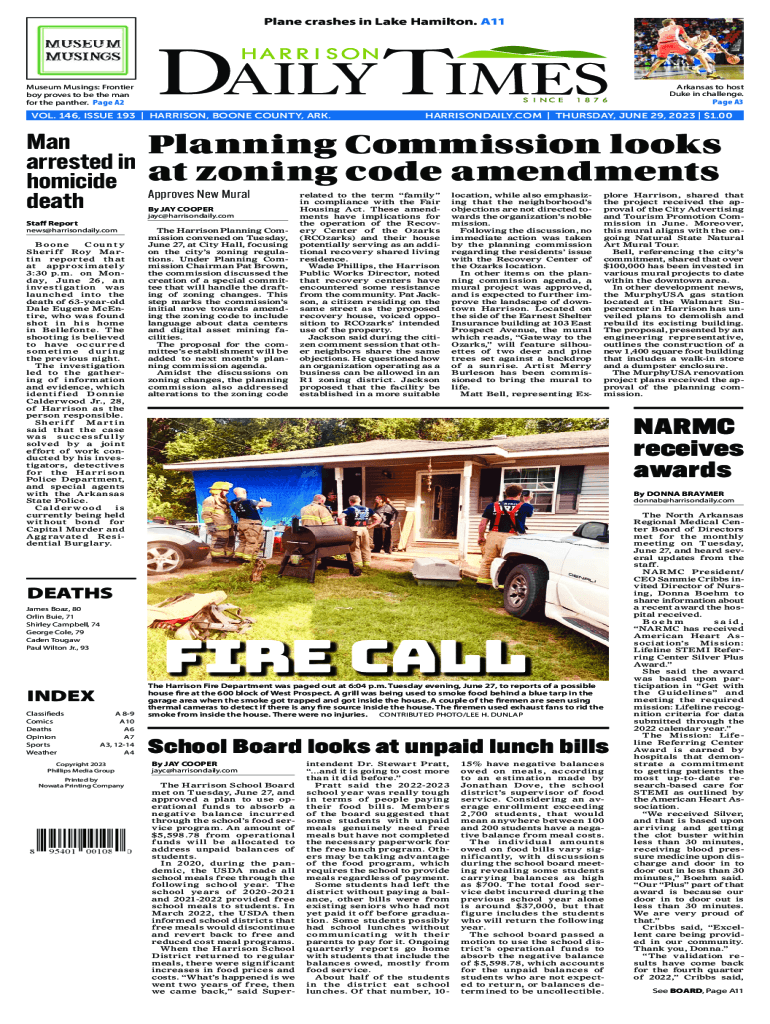 Plane crashes in Lake Hamilton. A11Arkansas to host Duke in challenge.Museum Musings: Frontier boy proves to be the man for the panther. Page A2Page A3VOL. 146, ISSUE 193 | HARRISON, BOONE COUNTY,
