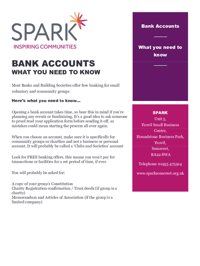 Get the free Opening a bank account for voluntary and community ...