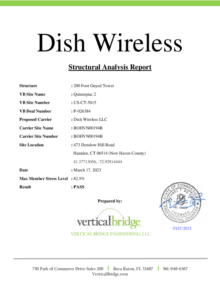 Dish Wireless Structural Analysis Report Structure: 200 Foot Guyed TowerVB Site Name: Quinnipiac 2VB Site Number: USCT5015VB Deal Number: P026384Proposed Carrier: Dish Wireless LLCCarrier Site Name: