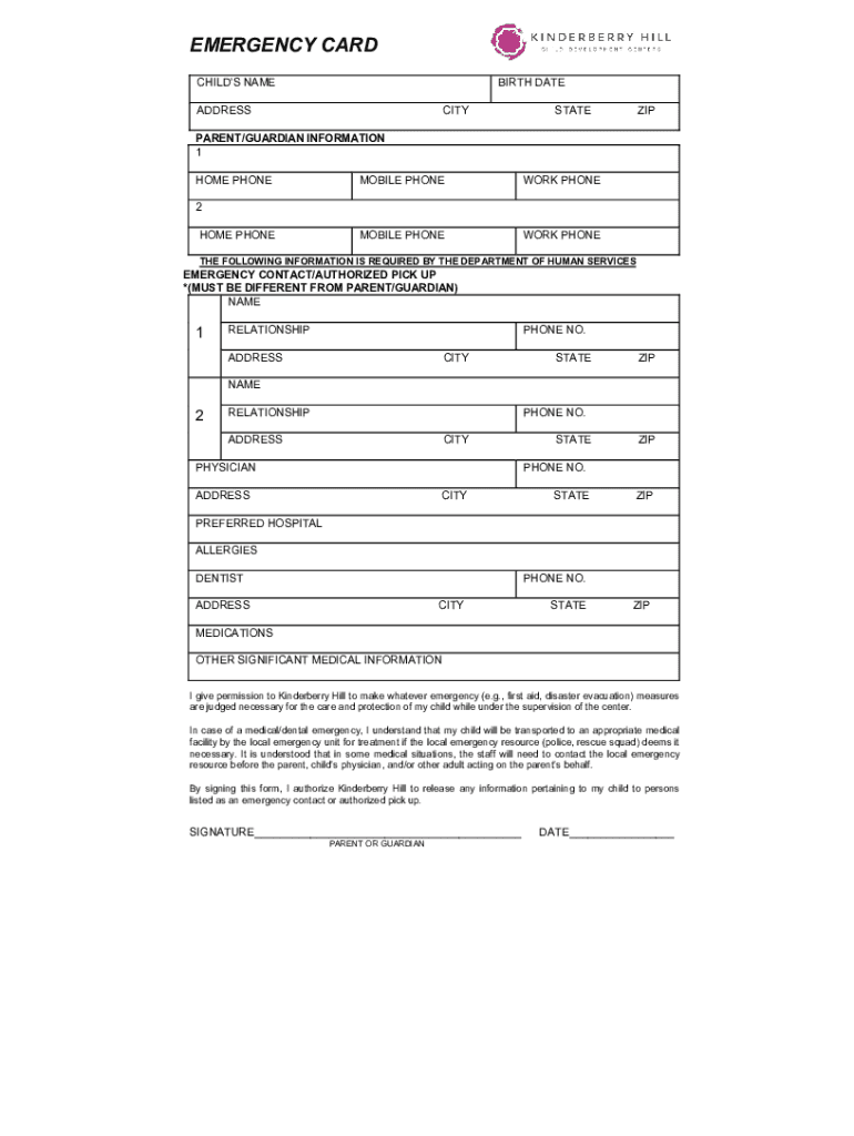 Email, fax, or share your kinderberry hill - preschool form via URL. You can also download, print, or export forms to your preferred cloud storage service.
