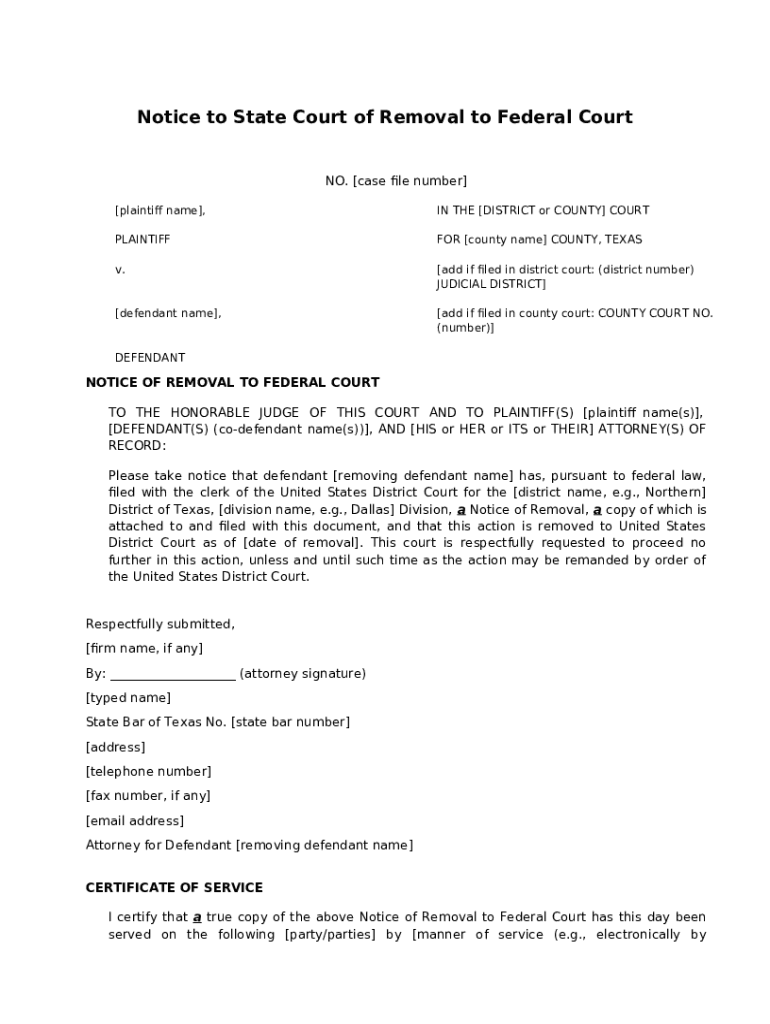 - Search for the Notice to State Court of Removal to Federal Court in the Search box on the top of the main page.
