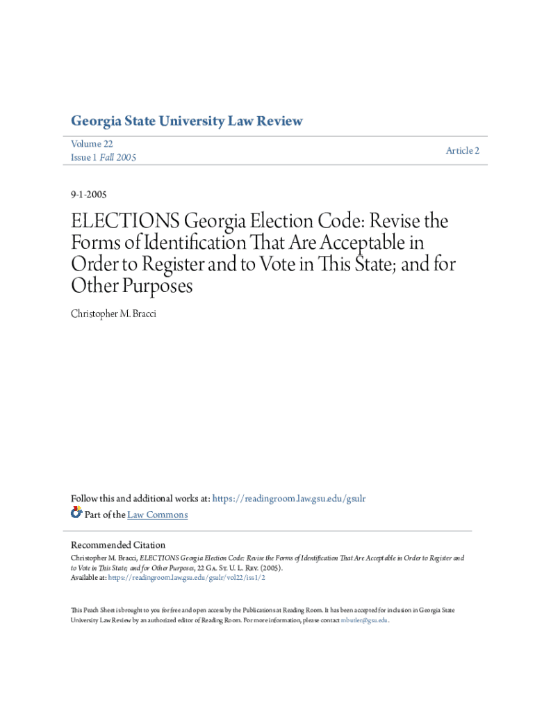 Issue 1 Fall 2005Article 2912005ELECTIONS Georgia Election Code: Revise the