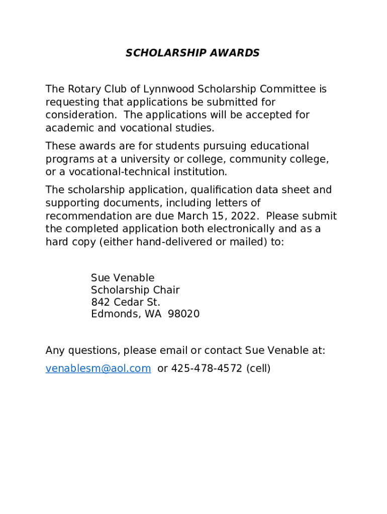 Rotary club of lynnwood scholarship application 1PDF word template: frequently asked questions