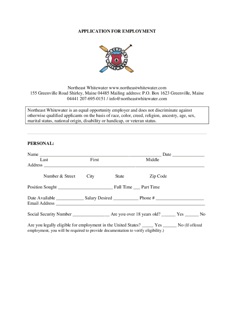 APPLICATION FOR EMPLOYMENT Northeast Whitewater www.northeastwhitewater.com
