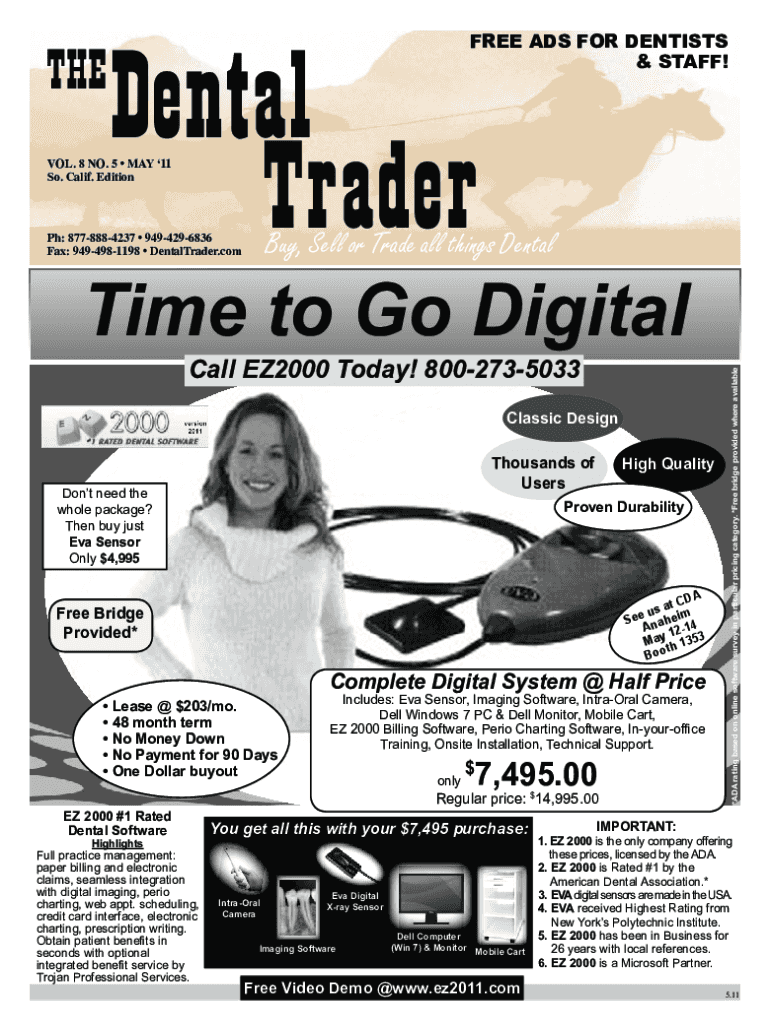 So. Calif. Edition, Sell or Trade all things Dental: 8778884237 9494296836