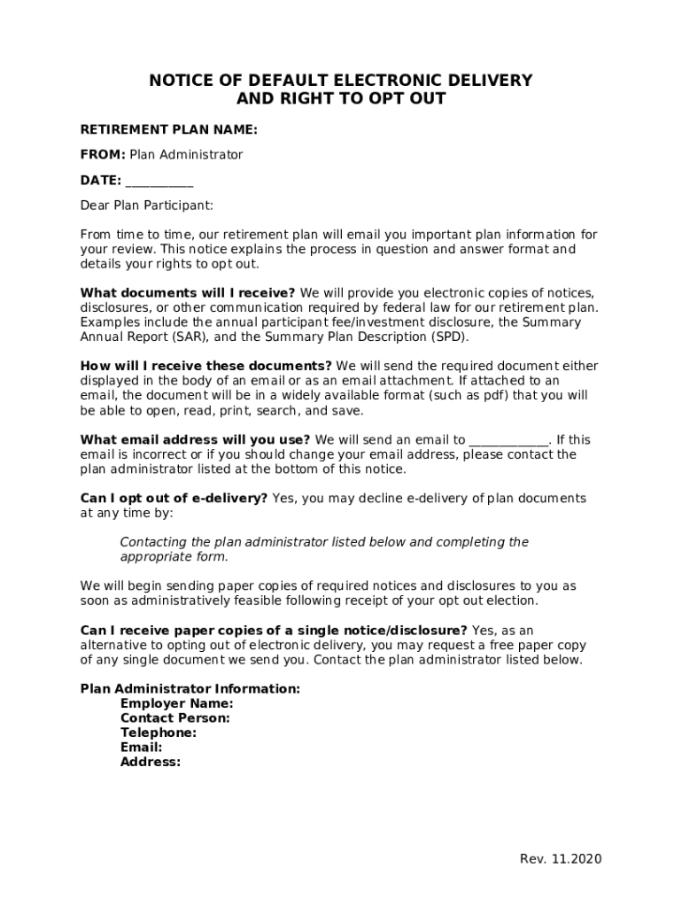 notice of default electronic delivery and right to opt out template instructions