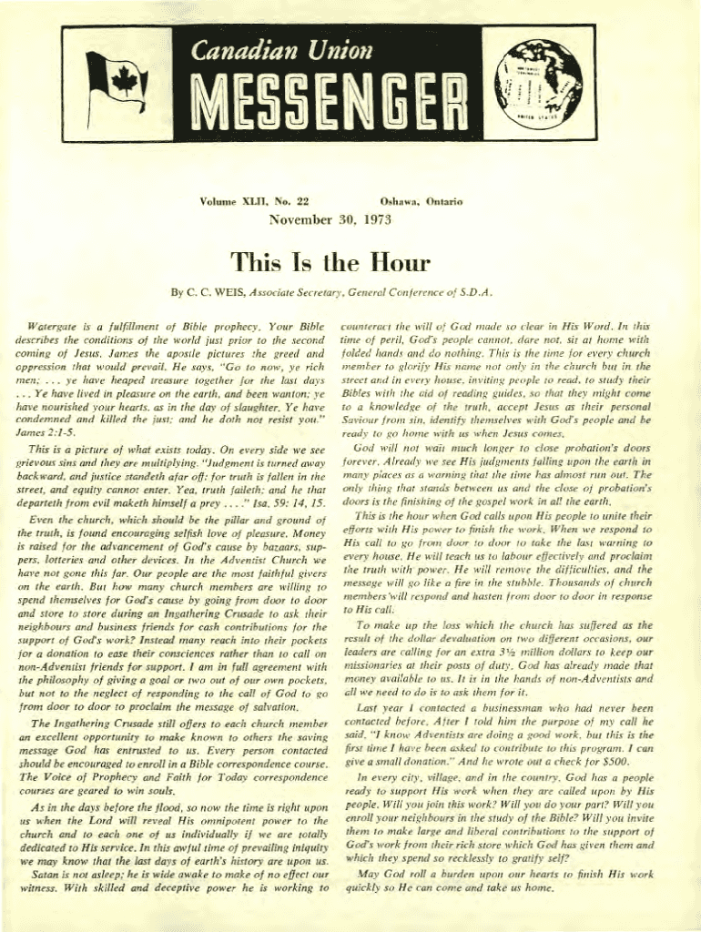 Volume CLII, No. 22Oshawa, Ontario November 30, 1973This Is the Hour