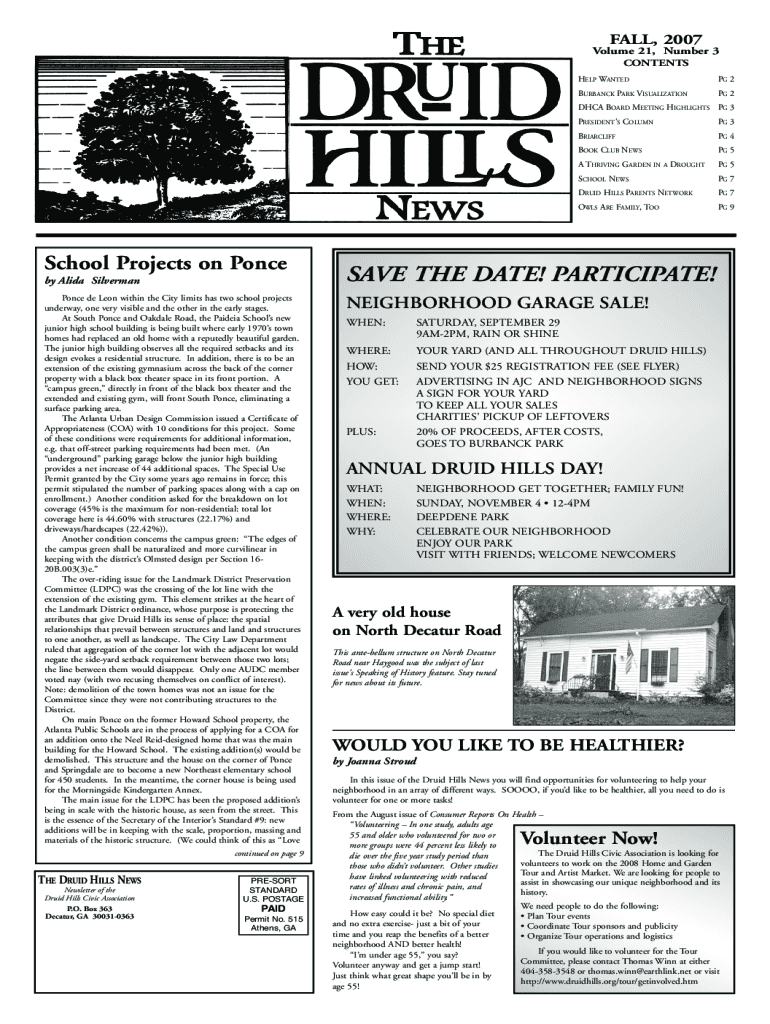 FALL, 2007Volume 21, Number 3 CONTENTS HELP WANTEDPG 2BURBANCK PARK VISUALIZATIONPG 2DHCA BOARD MEETING HIGHLIGHTS PG 3School Projects on Ponce by Alida Silverman Ponce de Leon within the City limits