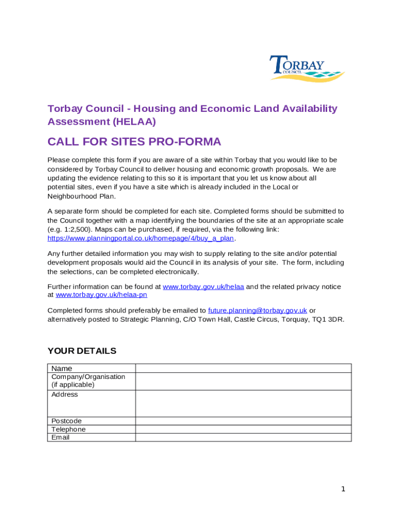 How to fill Torbay Housing and Economic Land Availability Assessment word template