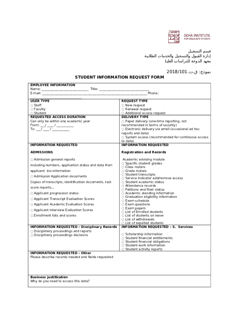 The Student Ination Request 2018 101 is a document that has to be completed and signed for specified reasons. In that case, it is furnished to the relevant addressee in order to provide specific info of any kinds. The completion and signing can be done in hard copy or with a suitable service like PDFfiller. These services help to fill out any PDF or Word file without printing them out. It also allows you to customize its appearance depending on your needs and put a valid digital signature. Once finished, the user ought to send the Student Ination Request 2018 101 to the respective recipient or several recipients by email and even fax. PDFfiller includes a feature and options that make your Word form printable. It has a variety of settings when printing out. It doesn't matter how you'll distribute a form after filling it out - physically or electronically - it will always look neat and firm. To not to create a new writable document from the beginning every time, make the original file into a template. After that, you will have a customizable sample.
