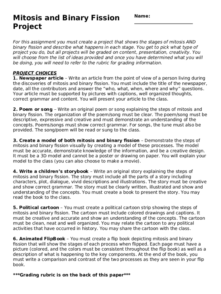 How to fill out UNIT 4 - Mitosis and Meiosis Project