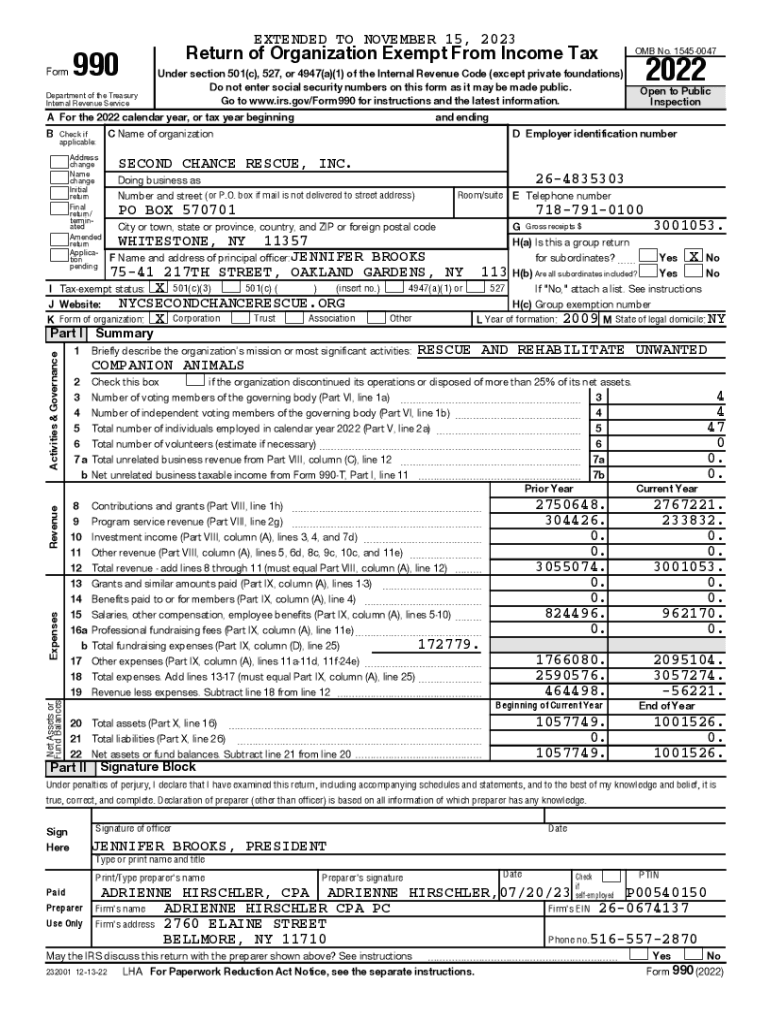 Organizations that meet the criteria for nonprofit status and engage in animal rescue or similar activities are required to file under Second Chance Rescue Inc.