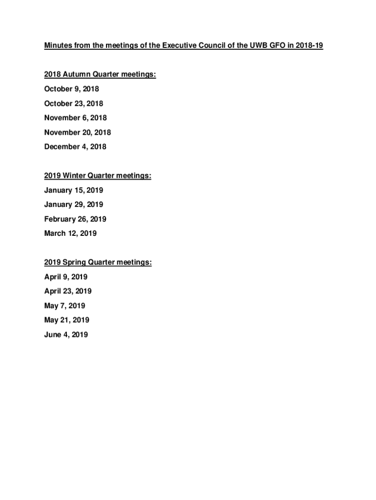 Minutes from the meetings of the Executive Council of the USB GO in 2018192018 Autumn Quarter meetings:
