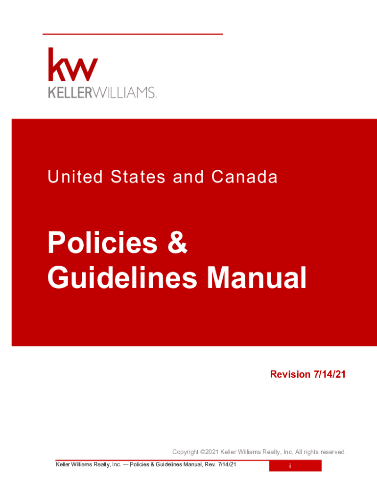 ContentsUnited States and CanadaPolicies & Guidelines Manual Revision 7/14/21Copyright 2021 Keller Williams Realty, Inc. All rights reserved. Keller Williams Realty, Inc. Policies & Guidelines Manual,
