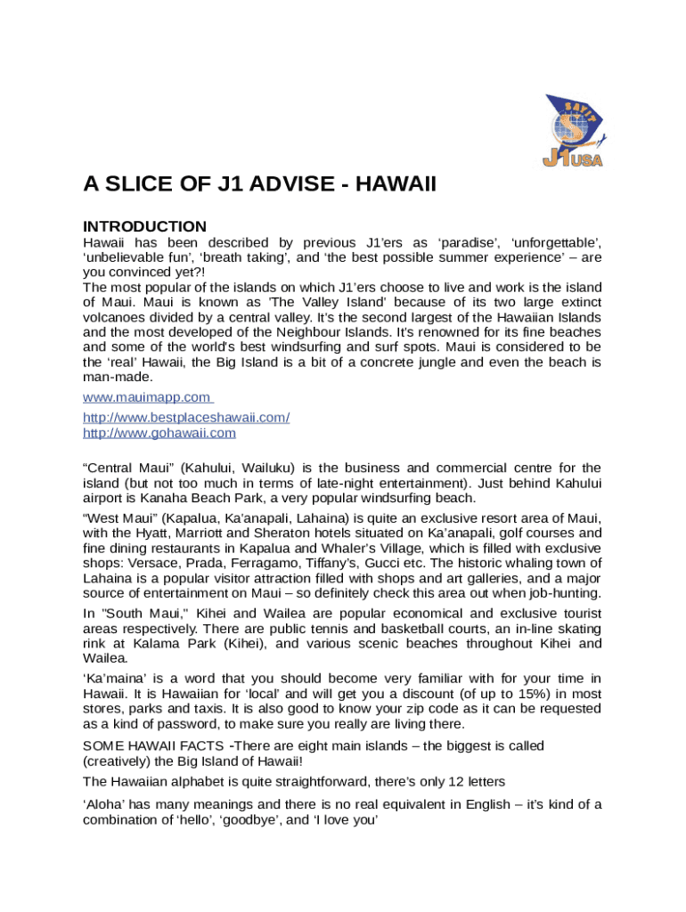 - Search for the Advice for J1 students - Department of Foreign Affairs in the Search box on the top of the main page.